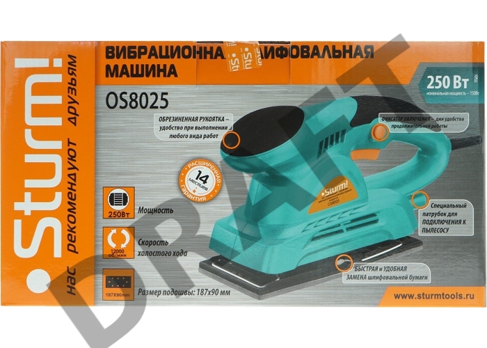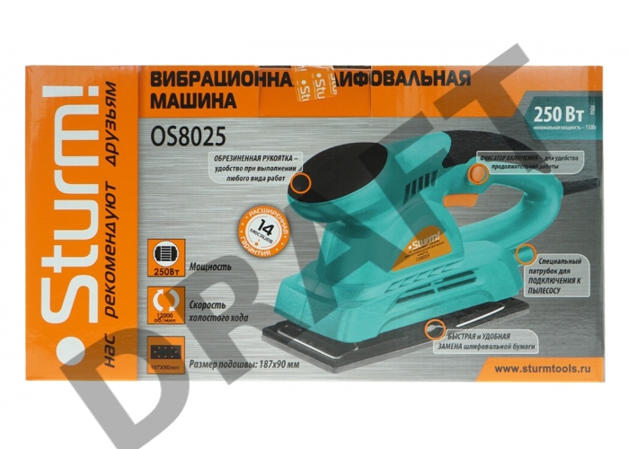 Машинка шлифовальная плоская вибрационная STURM OS8025 250Вт 12000об/мин 90х187мм подключ. пылесоса