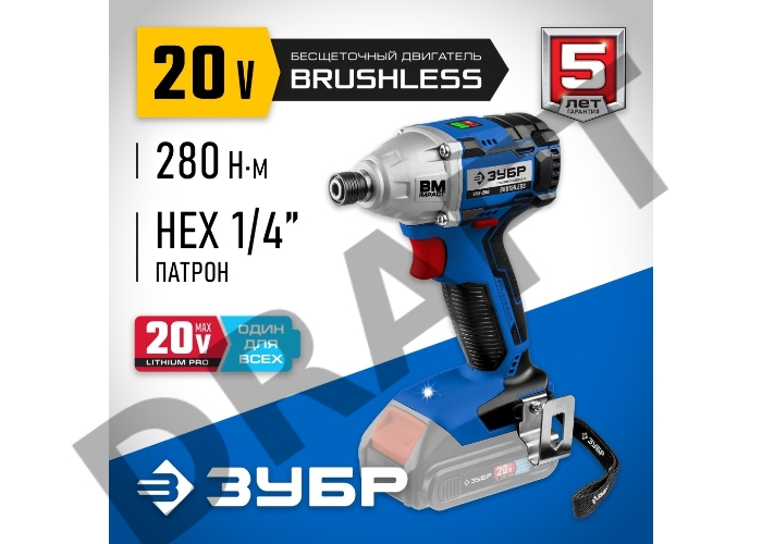 Винтоверт ЗУБР 20В бесщеточный , без АКБ, в коробке, Профессионал. GVB-250