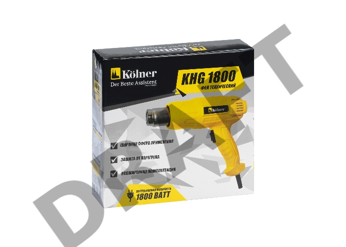 Фен технический Kolner KHG 1800 (10шт) 1800Вт, произв-ть 300/500 л/мин, рабочая температура 300/500