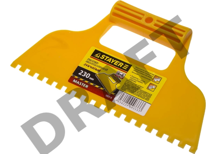 Шпатель STAYER, пластмассовый, зубчатый 6х6мм, 230мм