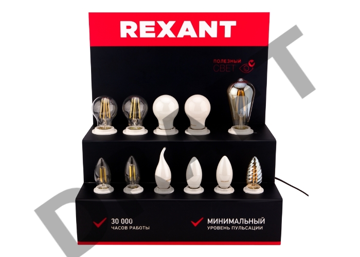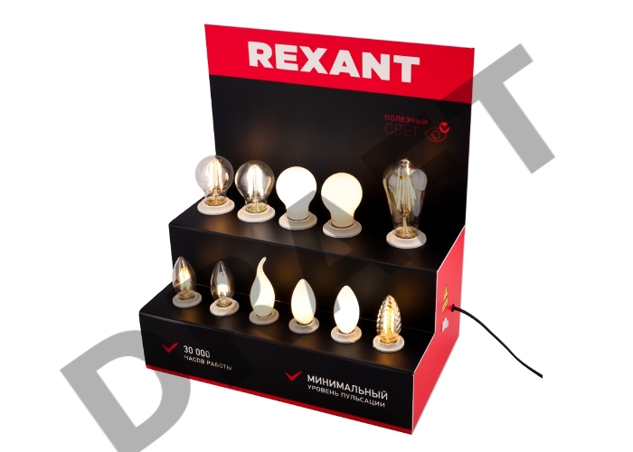 Демо-тестер акриловый для ФИЛАМЕНТА (AC 220V с шнуром питания 1.2 метра, с выключателем на корпусе, цоколи E14 x 6 шт.)