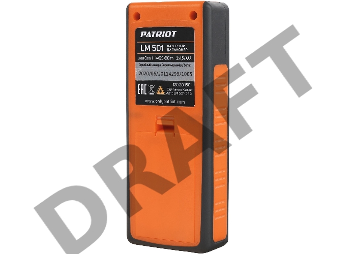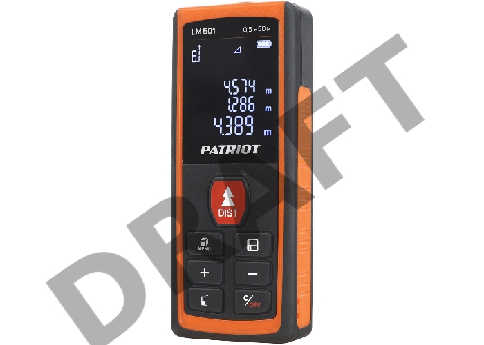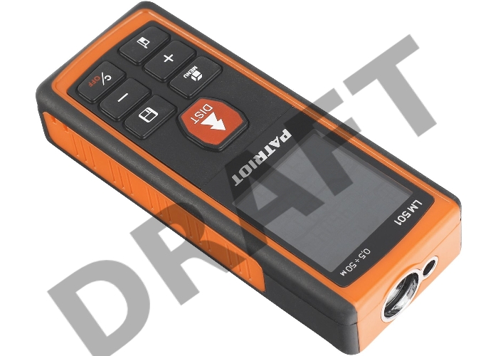Дальномер лазерный PATRIOT LM 501, макс. дистанция 50 метров, измерение площади, объема, подсветка, память 30 изм., чехол в комплекте