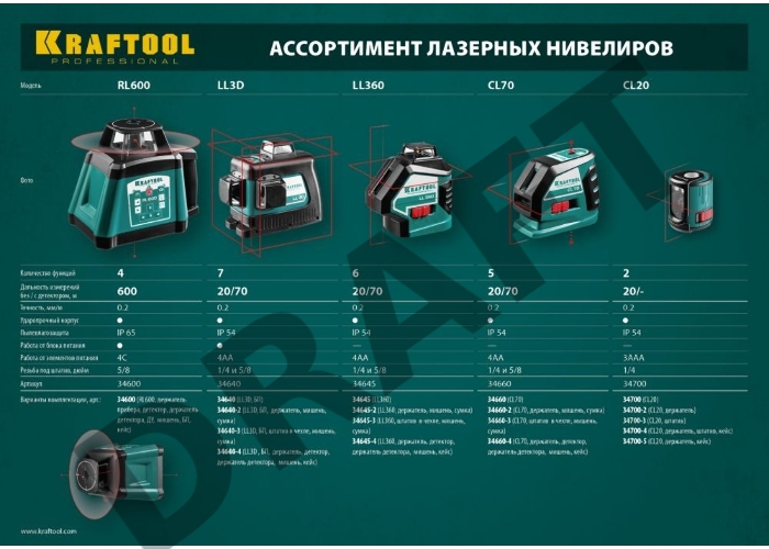 Лазерный нивелир Kraftool 34640-2 ''ll-3d-2'' 360 градусов 20м / 70м детектор