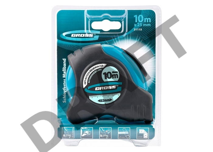 Рулетка GROSS 31115 ''schlagfest'' 10м x 25мм магн. обрез зацеп двухст. шкала автоматич. фиксация