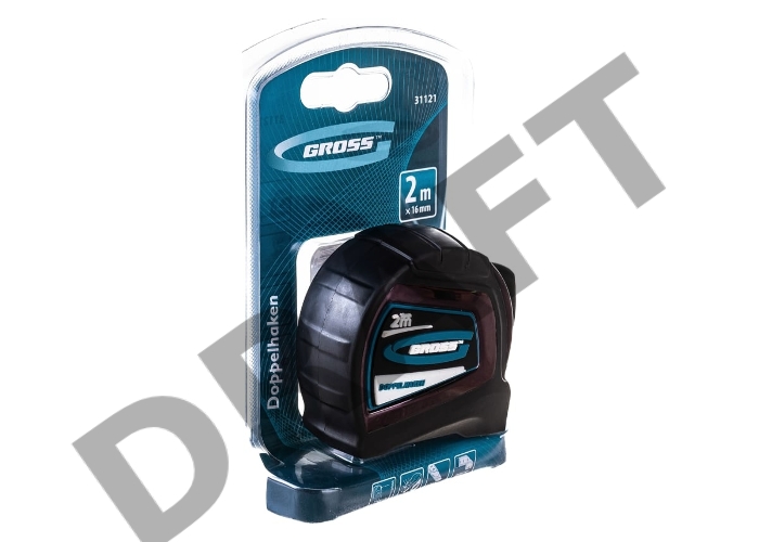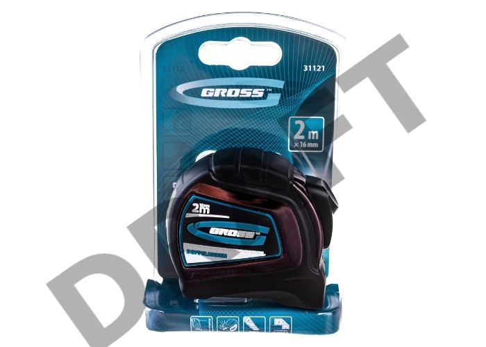 Рулетка GROSS 31121 ''doppelhaken'' 2м x 16мм односторонний зацеп нейлон двуст. шкала автоматич