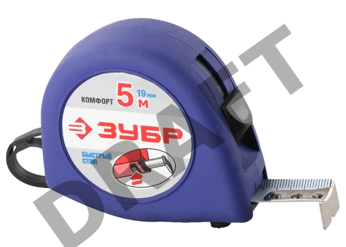 Рулетка ЗУБР "КОМФОРТ", корпус с резиновым напылением, 5мх19мм 34016-5