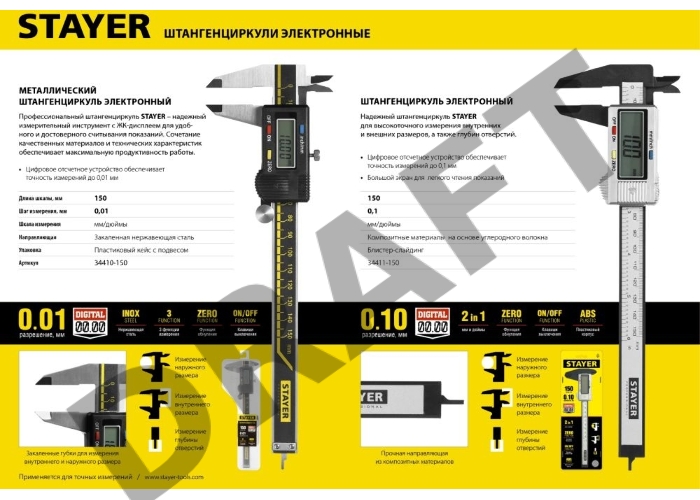 Штангенциркуль STAYER 34410-150 PROFESSIONAL электронный, шаг измерения 0,01мм, 150мм