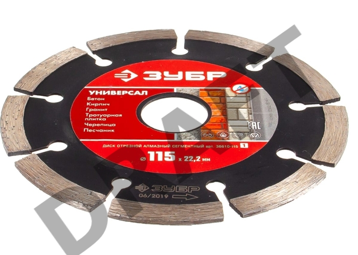 Диск алмазный отрезной сегментный ЗУБР УНИВЕРСАЛ 115 мм по бетону, кирпичу, камню