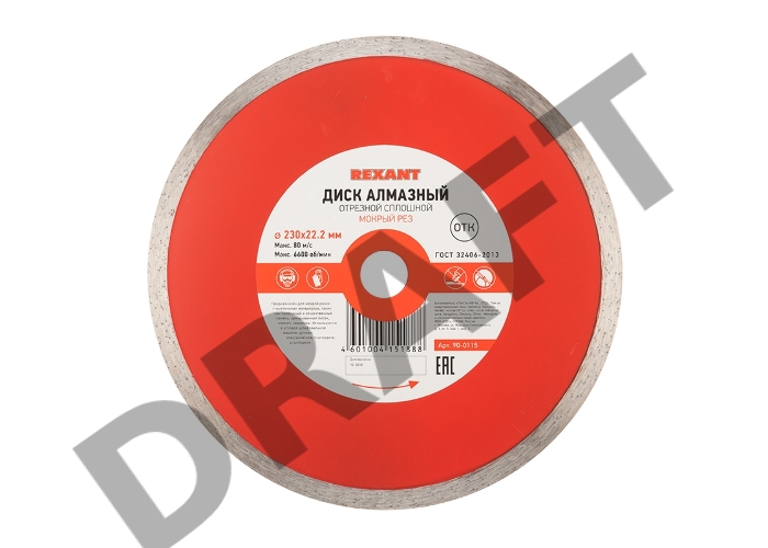 Диск алмазный отрезной сплошной 230x22.2 мм | 90-0115 | REXANT