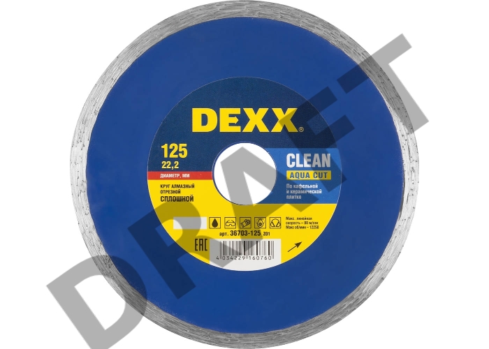 Круг алмазный DEXX 36703-125_z01 влажная резка сплошной для УШМ 125х5х22.2мм
