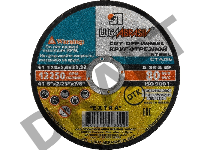 Круг отрезной абразивный ЛУГА 3612-125-2.0 по металлу для УШМ, 125x2,0x22,2мм