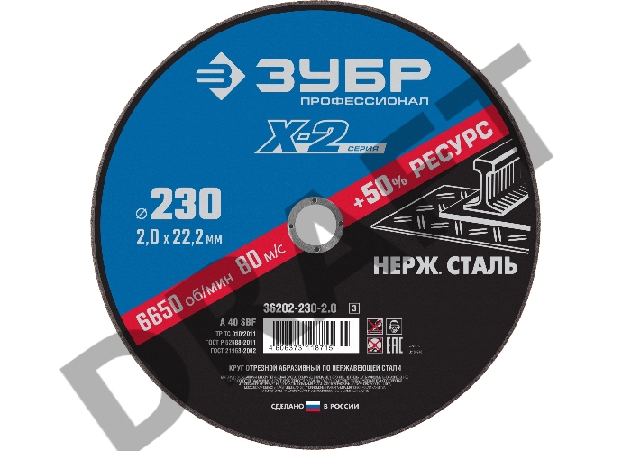 Круг отрезной "X-2" по нержавеющей стали, 230х2,0х22,23мм, ЗУБР