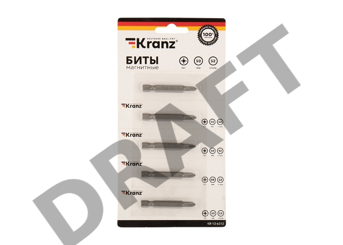 Бита PZ 1x50 мм для шуруповерта сталь S2 5 шт. (лента) Kranz