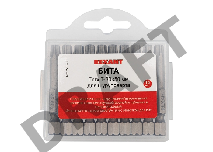 Бита Torx T-30*50 мм для шуруповерта сталь S2 (упак. 10 шт.) REXANT