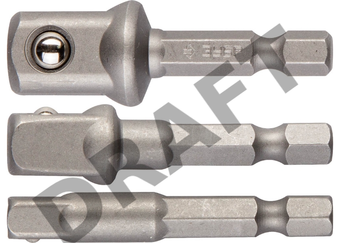 Наборы Набор ЗУБР (26756-H3) Адаптеры "ЭКСПЕРТ" для торцовых головок, E1/4" - 1/4", E1/4" - 3/8", E1/4" - 1/2", 3 предмета