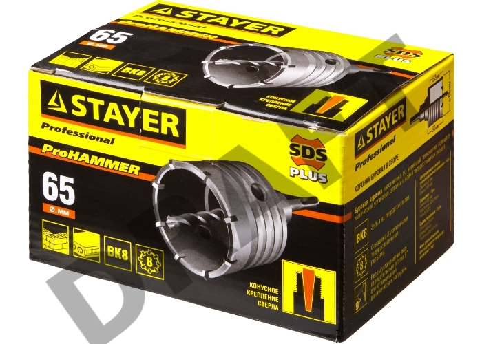 Коронка твердосплавная STAYER PROFESSIONAL 29190-65_z01 в сборе SDS+ d65мм