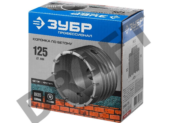Коронка ЗУБР "ПРОФЕССИОНАЛ" 29180-125 по бетону 125мм без державки резьбовая посадка М22