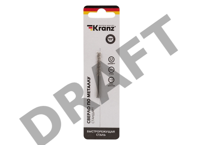 Сверло по металлу 2,5 мм HSS (2 шт. в упаковке) DIN 338 Kranz