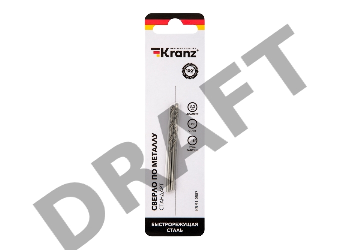 Сверло по металлу 3,2х65х35 мм HSS (2 шт. в упаковке) DIN 338 Kranz