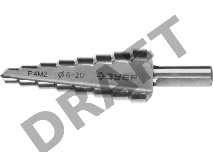 Сверло ступенчатое Зубр Мастер 29665-6-20-8 d=6-20мм,8ступ.d=6-8-10-12-14-16-18-20, L-75мм,3-х гран