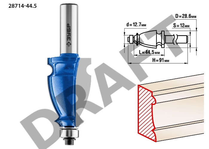 Фреза ЗУБР 28714-44.5 кромочная фигурная №3 d= 44.5мм дл.-28мм хв.-12мм d-12.7мм