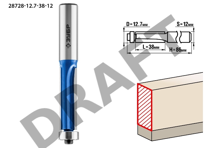 Фреза ЗУБР 28728-12.7-38-12 кром. с нижним подшипн. 3лезвия d=12.7мм дл.38мм хв.12мм d12.7мм