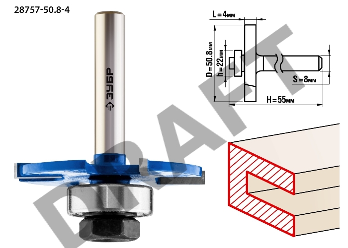 Фреза ЗУБР 28757-50.8-4 горизонтально-пазовая d= 50.8мм высота-4мм хв.-8мм d-22мм профессионал