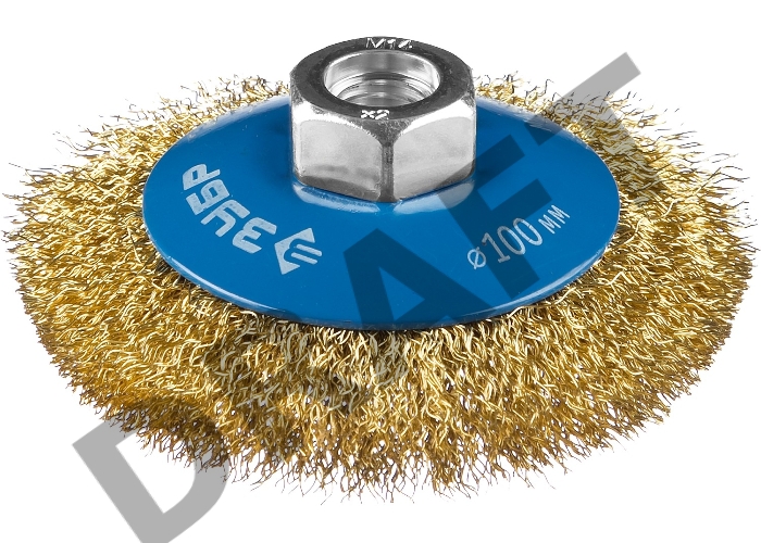 Щетка коническая ЗУБР "Профессионал". для УШМ, витая латунированная стальная проволока 0,3мм, 100ммхМ14