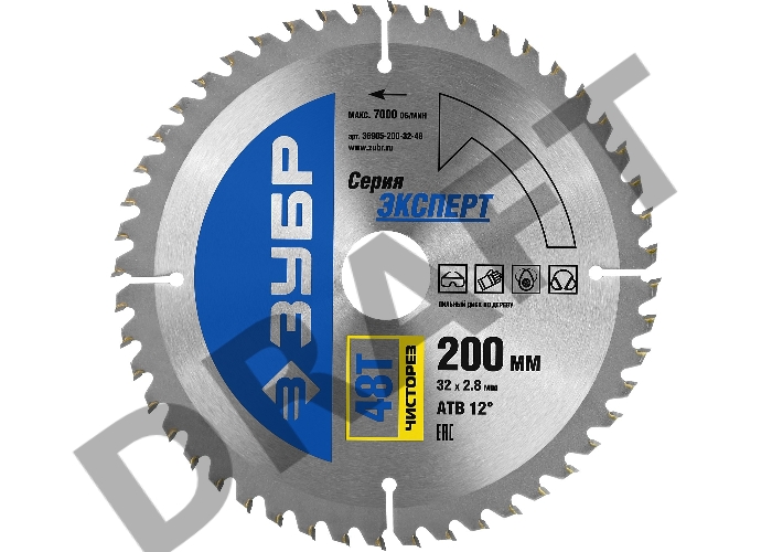 Оснастка Диск пильный ЗУБР "ЭКСПЕРТ" (36905-200-32-48) "Чистый рез" по дереву, 200х32мм, 48Т