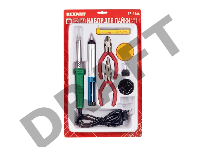 Набор для пайки REXANT №13 (паяльник 30Вт, подставка, канифоль, припой, бокорезы, тонкогубцы)