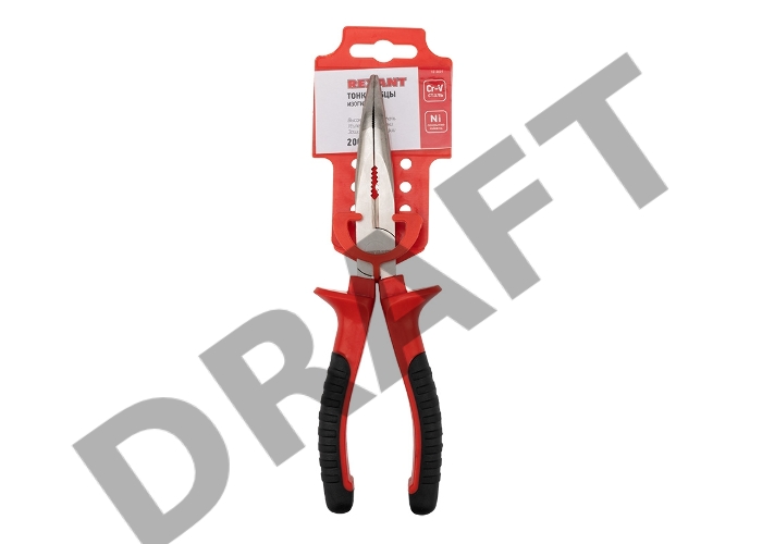 Тонкогубцы изогнутые REXANT 200 мм никелированные, двухкомпонентные рукоятки