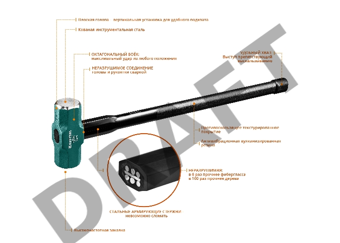 Кувалда KRAFTOOL STEEL FORCE 2009-5 5кг c армированной рукояткой