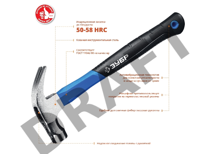 Молоток-гвоздодёр ЗУБР Профессионал 20356-450_z01 450 г цельнокованый столярный