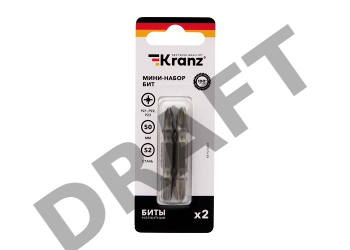 Мини-набор бит KRANZ PZ2xPZ2, PZ1xPZ3-50 мм (2 шт./уп.)