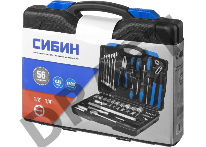 Набор инструментов СИБИН 27765-H56 слесарно-монтажного инструмента 56предметов