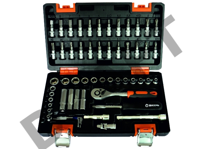 Набор инструментов ВИХРЬ 1/4"", CrV, пластиковый кейс 57 предм