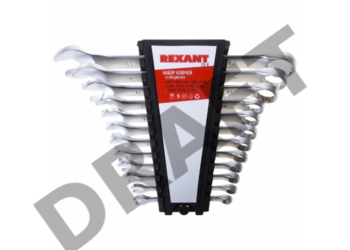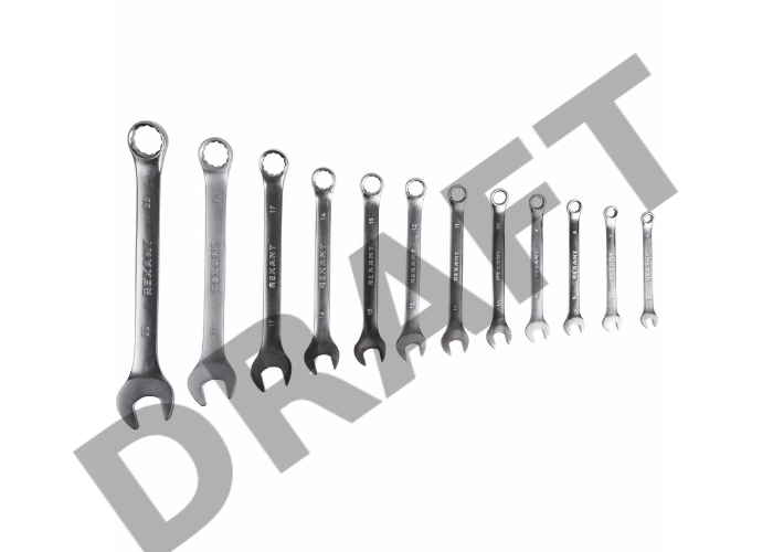 Набор ключей комбинированных REXANT (6-14, 17, 19, 22 мм), 12 шт., CrV, зеркальное хромирование