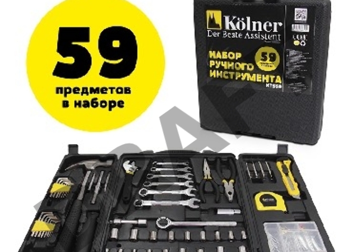 Набор ручного инструмента KOLNER KTS 59 в пластиковом кейсе 59 предметов.