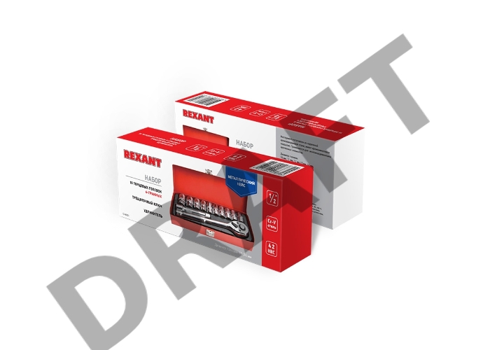 Набор торцевых головок REXANT 1/2, головки 10-24 мм, с трещоточным ключом, 12 предметов