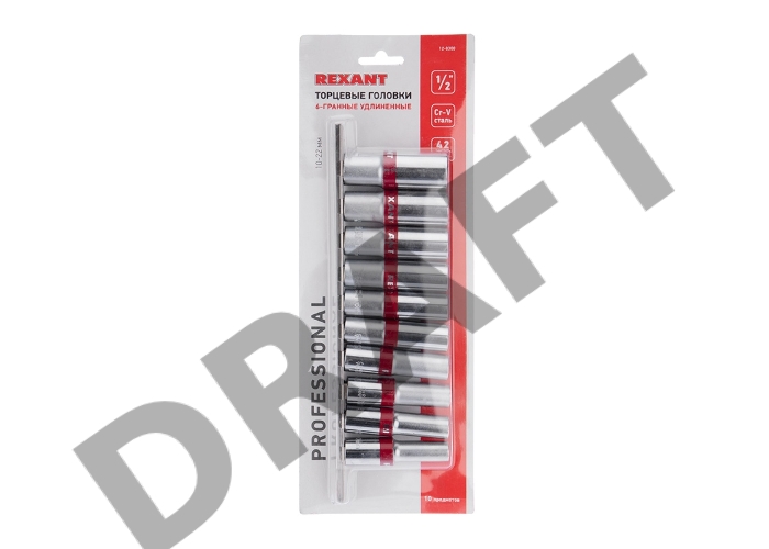Набор удлиненных торцевых головок REXANT 1/2, шестигранные, CrV, 10 шт., 10-22 мм