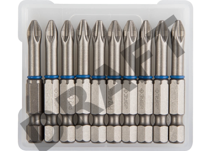 Наборы отверток Биты ЗУБР "ЭКСПЕРТ" торсионные кованые, обточенные, хромомолибденовая сталь, тип хвостовика E 1/4", PH2, 50мм, 10шт (26011-2-50-10)