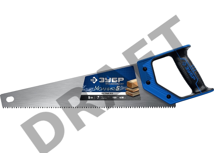 Ножовка по дереву (пила) ЗУБР "МОЛНИЯ-5" 400 мм, 5 TPI, прямой крупный зуб, быстрый рез поперек волокон, для крупных и средних заготовок