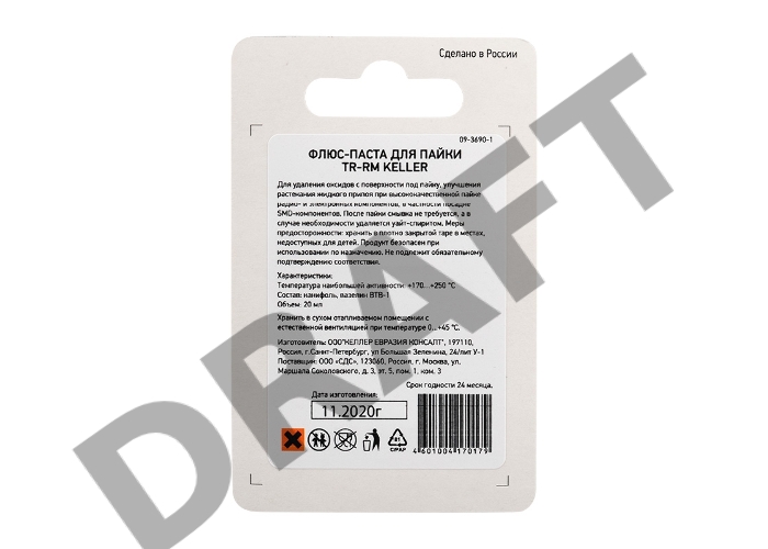 Флюс для пайки REXANT, паста TR-RM KELLER, 20 мл, банка, блистер