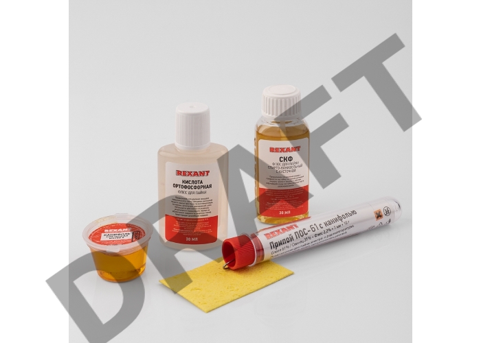 Набор К5 для пайки REXANT универсальный (припой, губка, канифоль, флюс СКФ, флюс ОК)