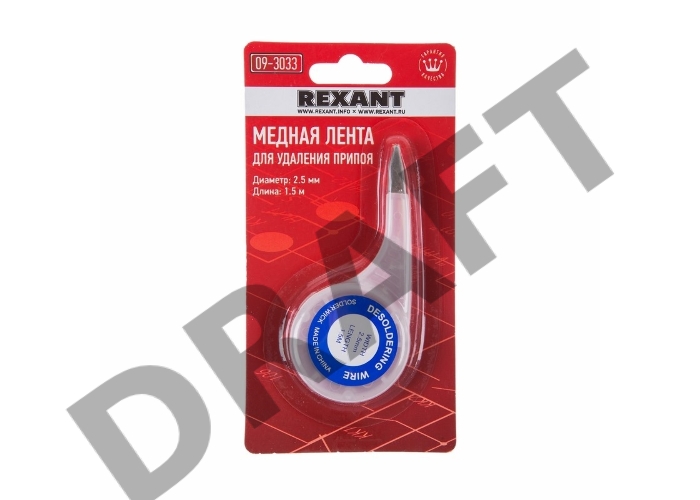 Оплетка для удаления припоя REXANT, медная, 2.5 мм x 1.5 м, диспенсер