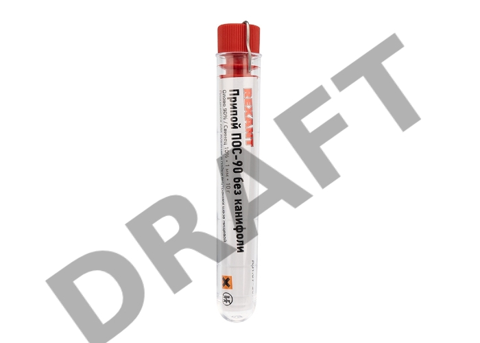 Припой без канифоли ПОС-90 REXANT, 10 г, Ø1.0 мм, (олово 90%, свинец 10%), колба