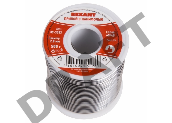 Припой с канифолью REXANT, 500 г, Ø2.0 мм, (олово 60%, свинец 40%), катушка