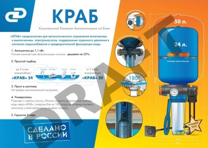 Автоматика ДЖИЛЕКС КРАБ 50 50л система для автоматического водоснабжения 220В