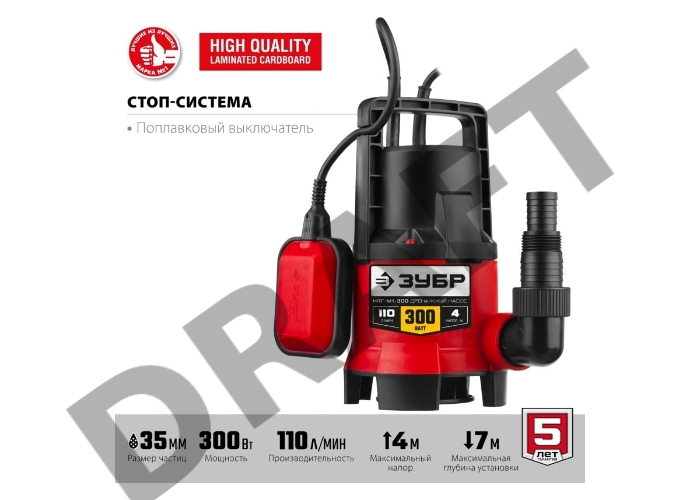 Дренажный насос ЗУБР для грязной воды, 300 Вт НПГ-М1-300