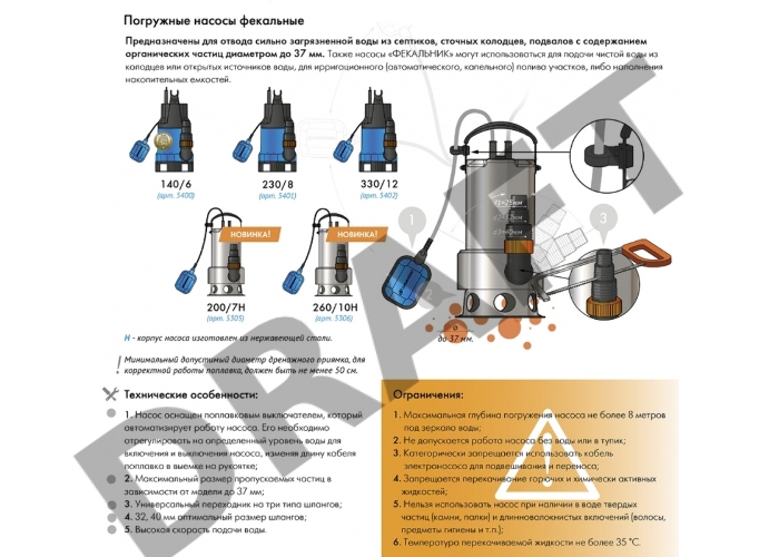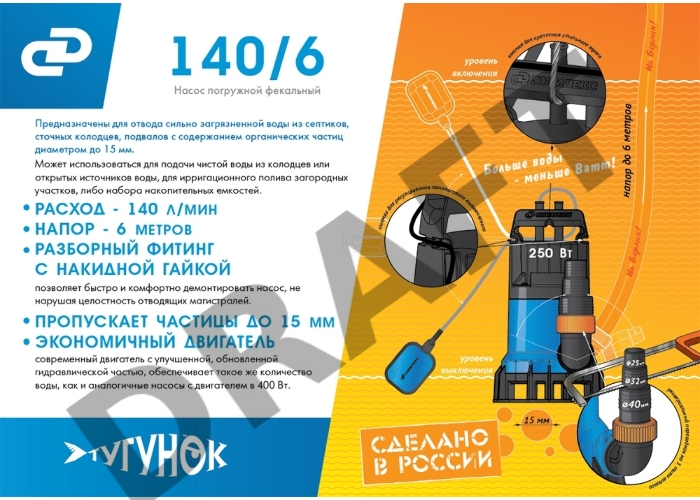 Насос фекальный ДЖИЛЕКС ТУГУНОК 140/6 250Вт 140л./мин напор 6м
